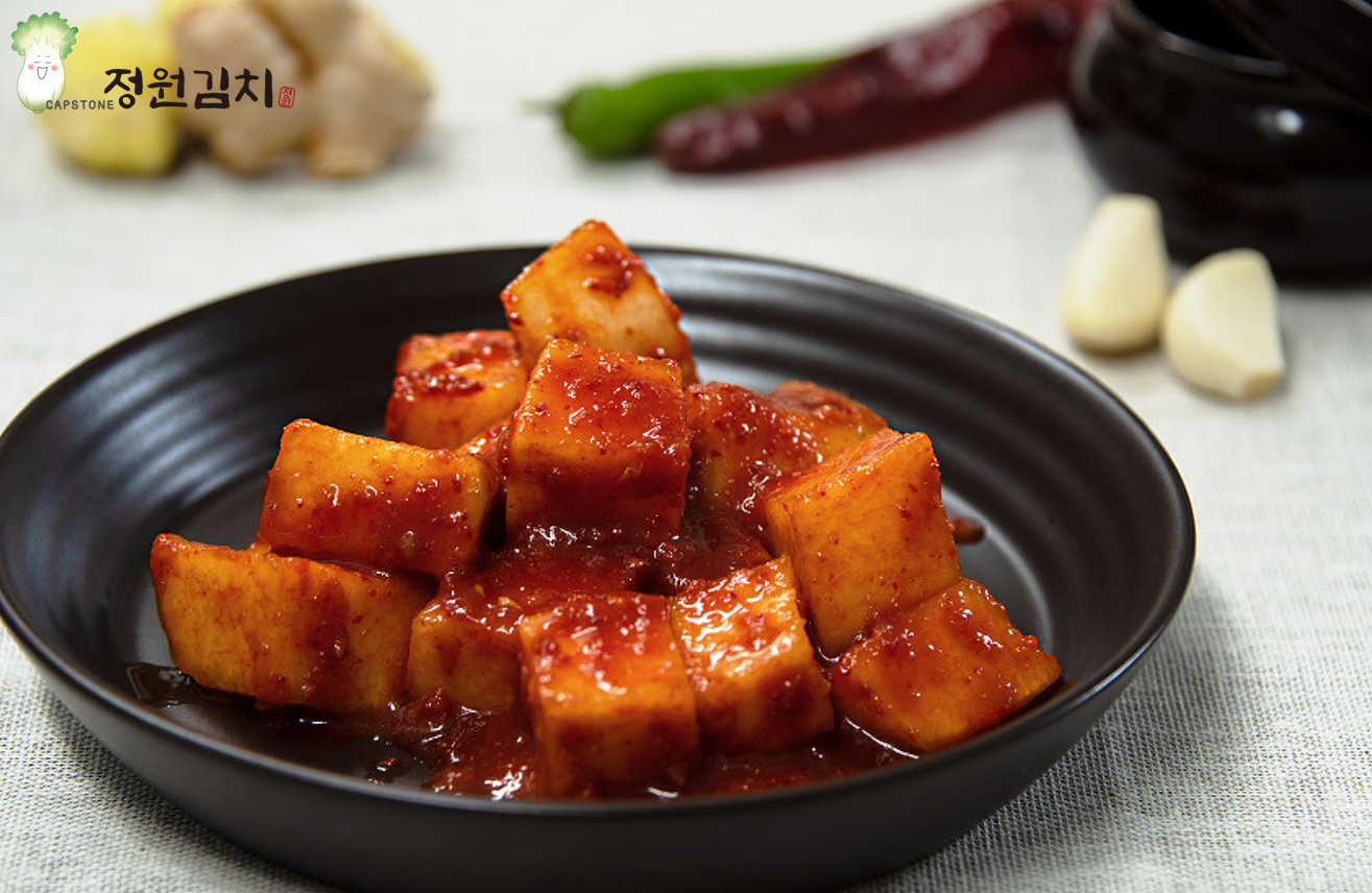 무(국산) 90%, 천일염(국산), 고춧가루(국산), 양파(국산), 까나리액젓(국산), 새우젓(국산), 멸치액젓(국산), 새우가루(국산), 찹쌀풀(국산), 마늘(국산), 생강(국산), 대파(국산), 배(국산), 무(국산), 설탕