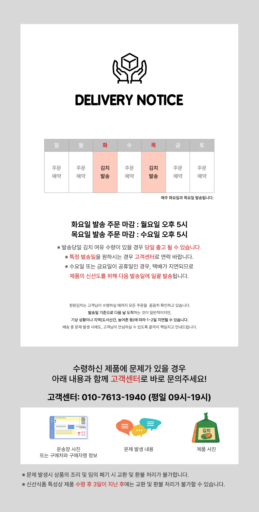 - 보내실 곳: 서울특별시 성동구 용답길 141 1층 정원김치
